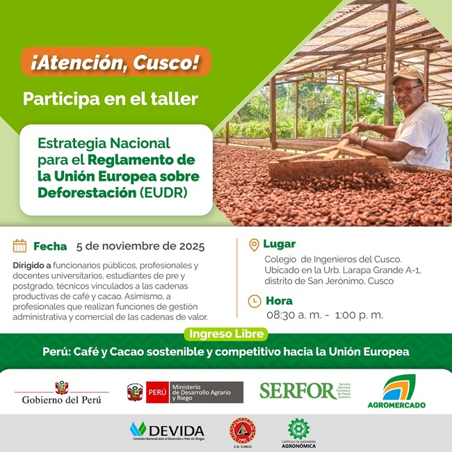 Este espacio permitirá conocer los alcances del nuevo reglamento europeo y cómo el Perú se prepara para garantizar una producción sostenible y competitiva rumbo al mercado internacional.