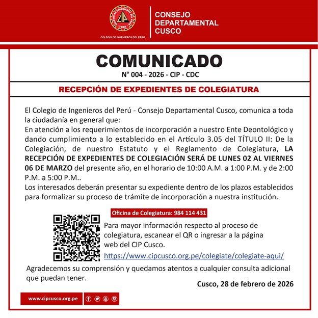 CONVOCATORIA N°02-2026: PARA FORMAR PARTE DEL COMITÉ BIM EN EL CIP CUSCO