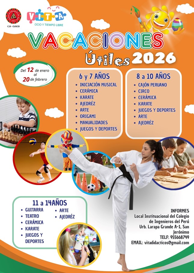 VITA Ocio y Tiempo Libre, invita a participar en las Vacaciones Útiles 2026, que se llevarán a cabo en las instalaciones del CIP C.D. Cusco.