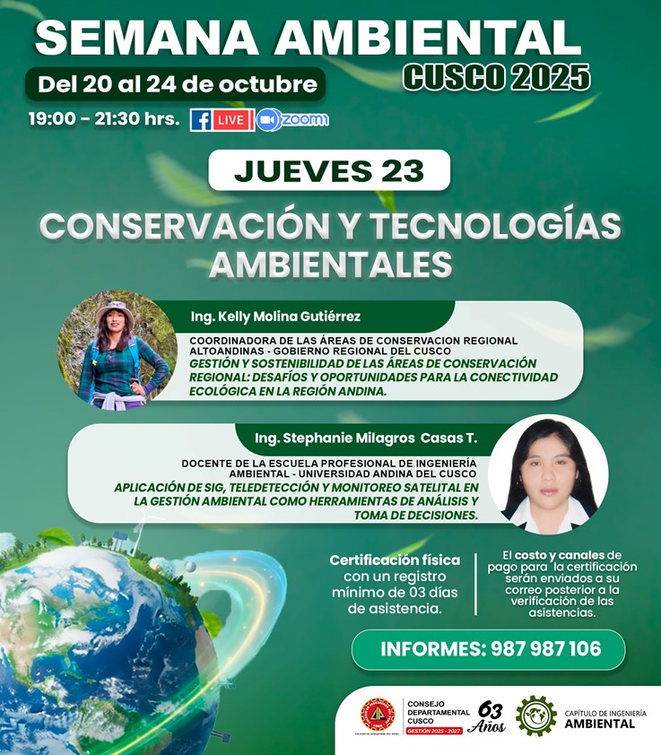 El Capítulo de Ingeniería Ambiental del CIP CD Cusco, invita a participar al 4to día de la Semana Ambiental Cusco 2025.
