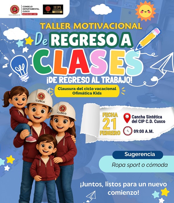 #BienestarCIPCusco || 𝗧𝗔𝗟𝗟𝗘𝗥 𝗠𝗢𝗧𝗜𝗩𝗔𝗖𝗜𝗢𝗡𝗔𝗟 𝗗𝗘 𝗥𝗘𝗚𝗥𝗘𝗦𝗢 𝗔 𝗖𝗟𝗔𝗦𝗘𝗦 ¡𝗬 𝗗𝗘 𝗥𝗘𝗚𝗥𝗘𝗦𝗢 𝗔𝗟 𝗧𝗥𝗔𝗕𝗔𝗝𝗢!![]()