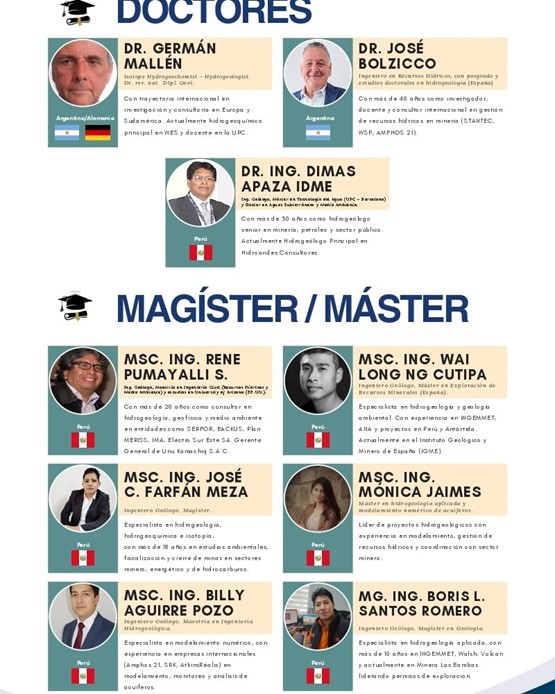 ✅ Contaremos con destacados expositores nacionales e internacionales, quienes compartirán su experiencia en gestión, exploración y evaluación de recursos hídricos subterráneos.